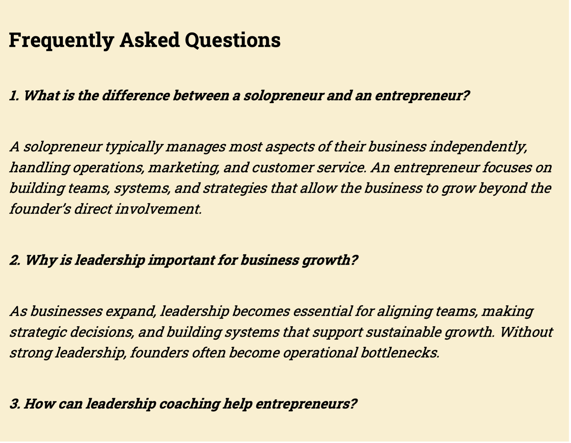 However, as the business grows, technical expertise alone is no longer enough to sustain momentum. The transition from solopreneur to entrepreneur requires a shift in how founders think and lead. This is where a structured leadership coaching approach becomes essential, helping business owners evolve from hands-on operators into strategic leaders who can build scalable teams, make high-impact decisions, and drive sustainable growth.